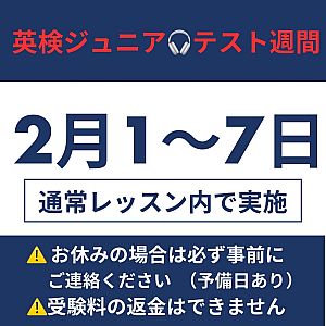 HOME > 掲示板 > Jan.27(Mon),2025:英検ジュニアテスト週間