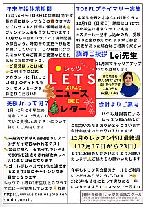 HOME > 掲示板 > Nov.24(Mon),2025:ニュースレター12月号